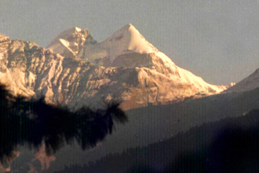 ...Снежные вершины сверкают в лучах солнца. Гора «М» во всей своей красоте. Она открыта взору — на небе ни облачка — и лишь меняет наряды, становясь то белой, то розовой, то пурпурной. Луч солнца первой ее зажигает на рассвете и гасит последней при заходе. Внизу — река Биас. Сейчас она больше похожа на ручей. Тишина. Слышен лишь шум где-то сбегающей с гор воды, иногда крики птиц. Порой откуда-то издалека доносится ритмичный бой барабана.