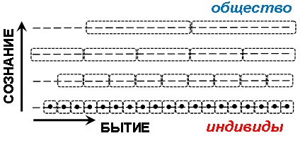 Исследование природы содержания и формы сознания в рамках предметно-деятельностного подхода мы начинаем с рассмотрения общества как системы сильно взаимодействующих между собой индивидов и предметов в процессе исторически сложившейся деятельности.