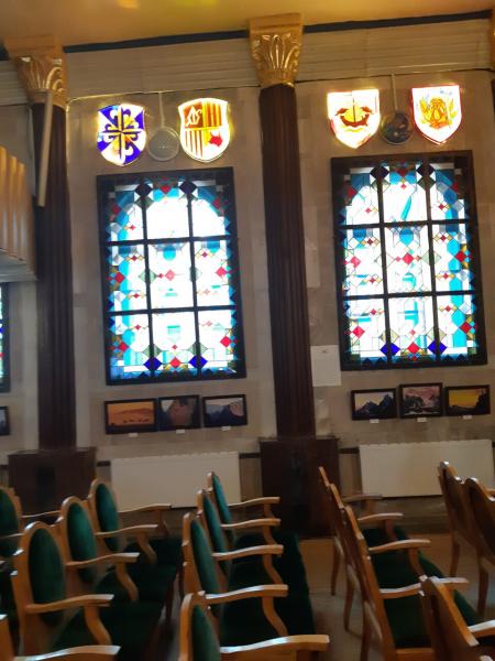 - Католический зал – купольные потолки, строгие колонны, полукруглые витражные окна.